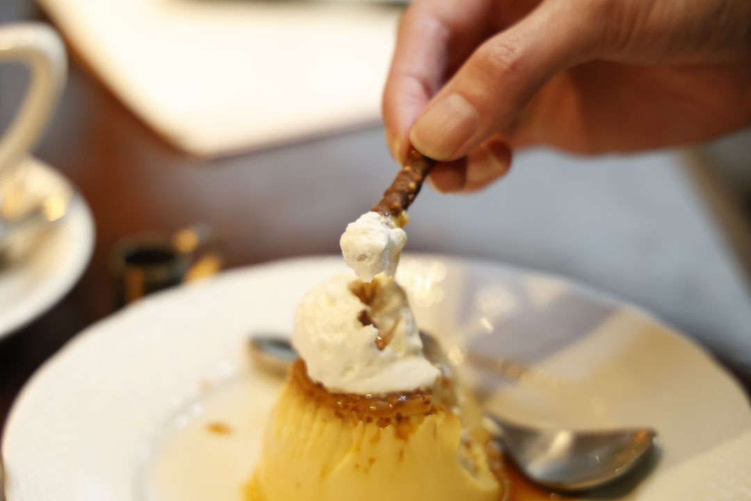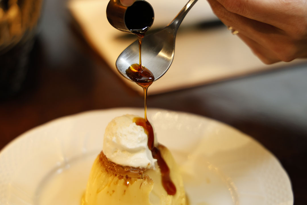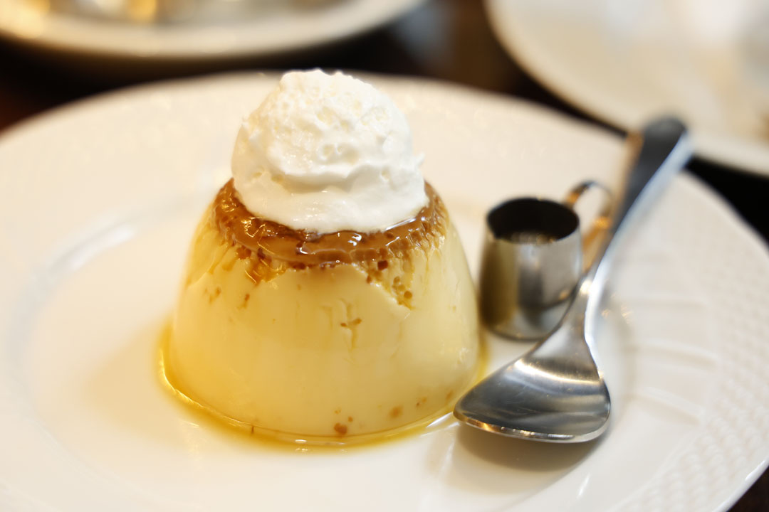 固めの心地よい食感や濃厚な味わいは「通常の2倍使いした卵」ならでは。ほろ苦いカラメルソースが弾みあるアクセントに◎。