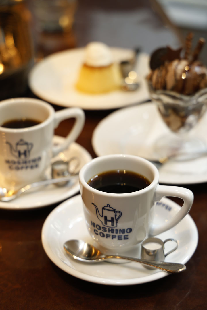 星乃珈琲自慢のコーヒーと、それぞれ好きなスイーツを一品ずつ。忙しい者同士なので数カ月単位のインターバルはあたりまえ。