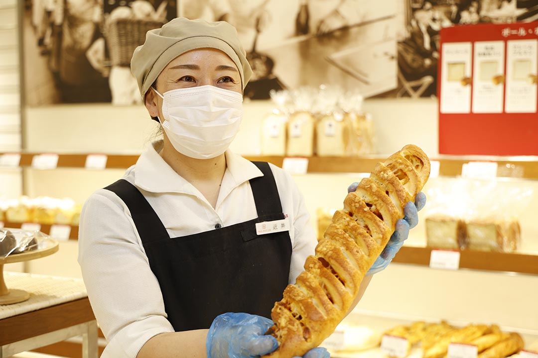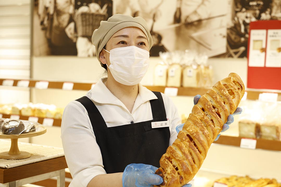 その真相を教えてくれたのが同店の近井さん。「このビル(大丸心斎橋店 北館)の上に厨房があって、そこで毎朝6時から作っているんです」と。生地を練って、発酵して、成形して、焼き上げるまでの工程をココ(大丸心斎橋店 北館)で行っている“できたて♡”だったんですね。