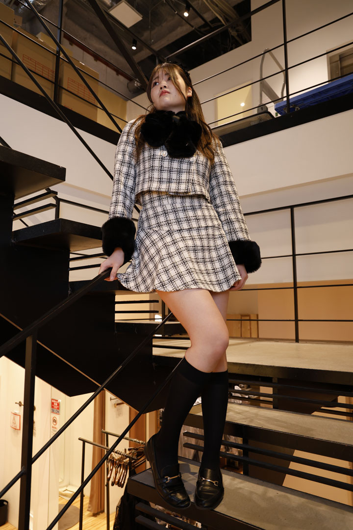 一方のマイさんはジャケット&スカートのセットアップをチョイス。