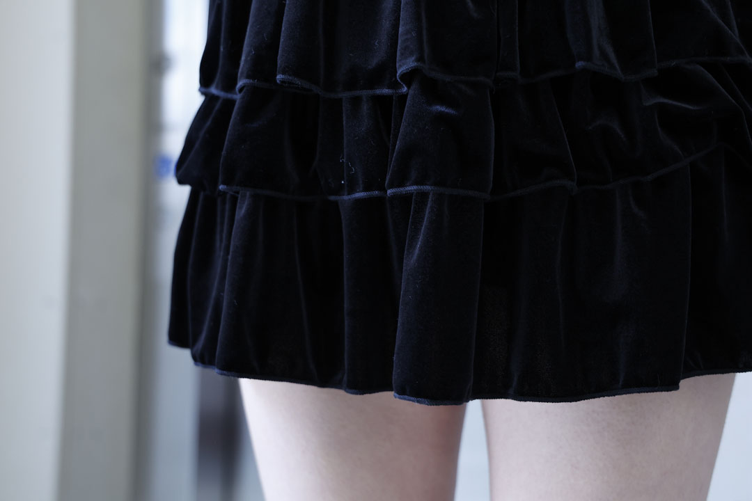 思い切った肌見せにベロア風味のティアードスカート。ここまでヘルシー&セクシーにキメ込んでくるのならば、さぞかし全身イメージはハジケ飛んでいるんだろうと思いきや・・・