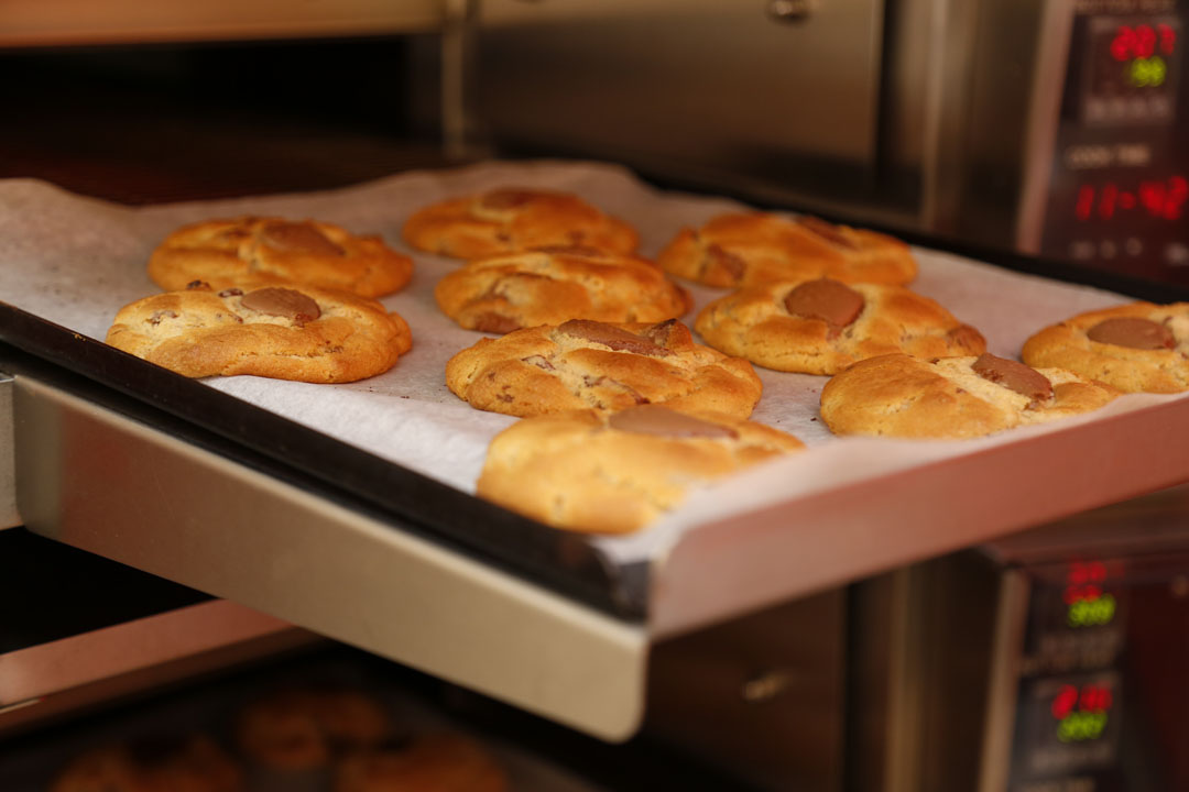 しかも、Ben‘s Cookiesのために特別に設えたベルトコンベアオーブンで、こだわり生地のレア感仕上げを左右する最重要ポイントなのよ。