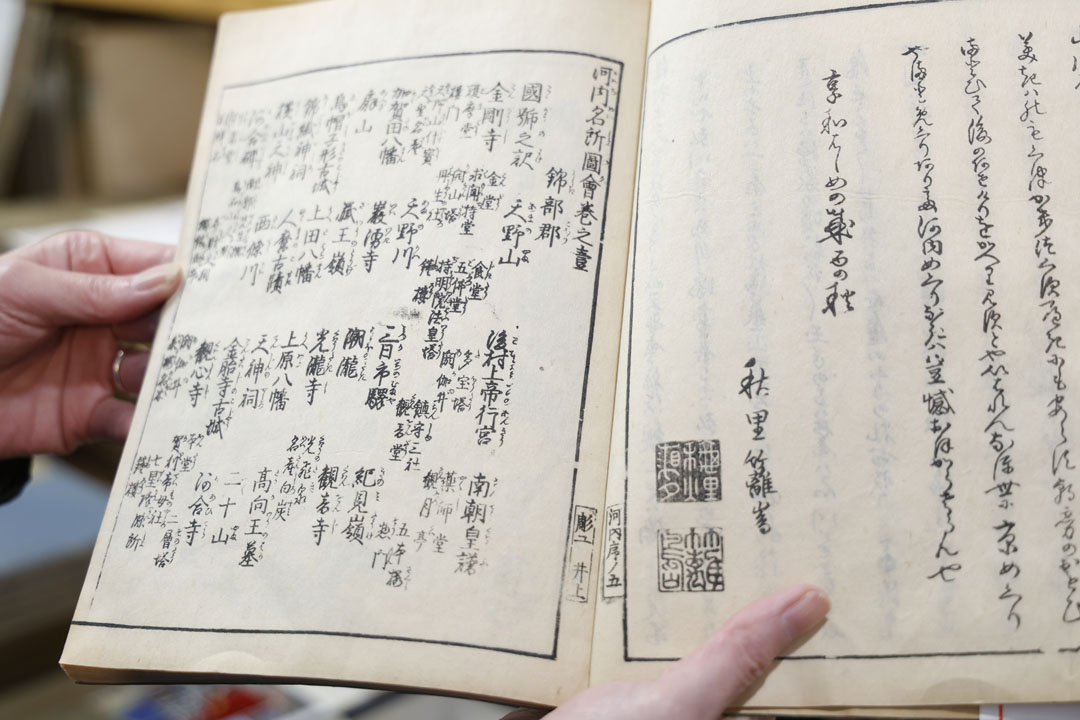 河内国の名所を絵画と文章で紹介した地誌で、享和元年(1801年)に刊行されたものを復刻したもの。学術的な価値はもちろん、ご自身が住む土地の歴史に触れてみたいと、お買い求めになる方もいるそうです。