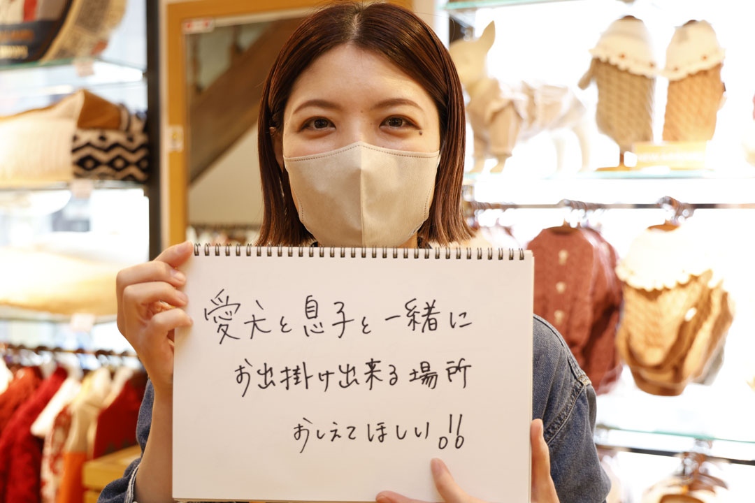 森田さんの「教えて!」もファミリー旅行。5才の頃に家族となった元保護犬のトイプードル、3歳で元気いっぱいの息子さん、家族みんなでいっしょに思い出が作れる旅行先をリサーチ中です!そのいっぽうで、ワンちゃんとの旅行に便利なアイテムやグッズは「ここのショップにたくさんあります!」と満面笑み。そうそう、あとは行き先さえ決まれば・・・!