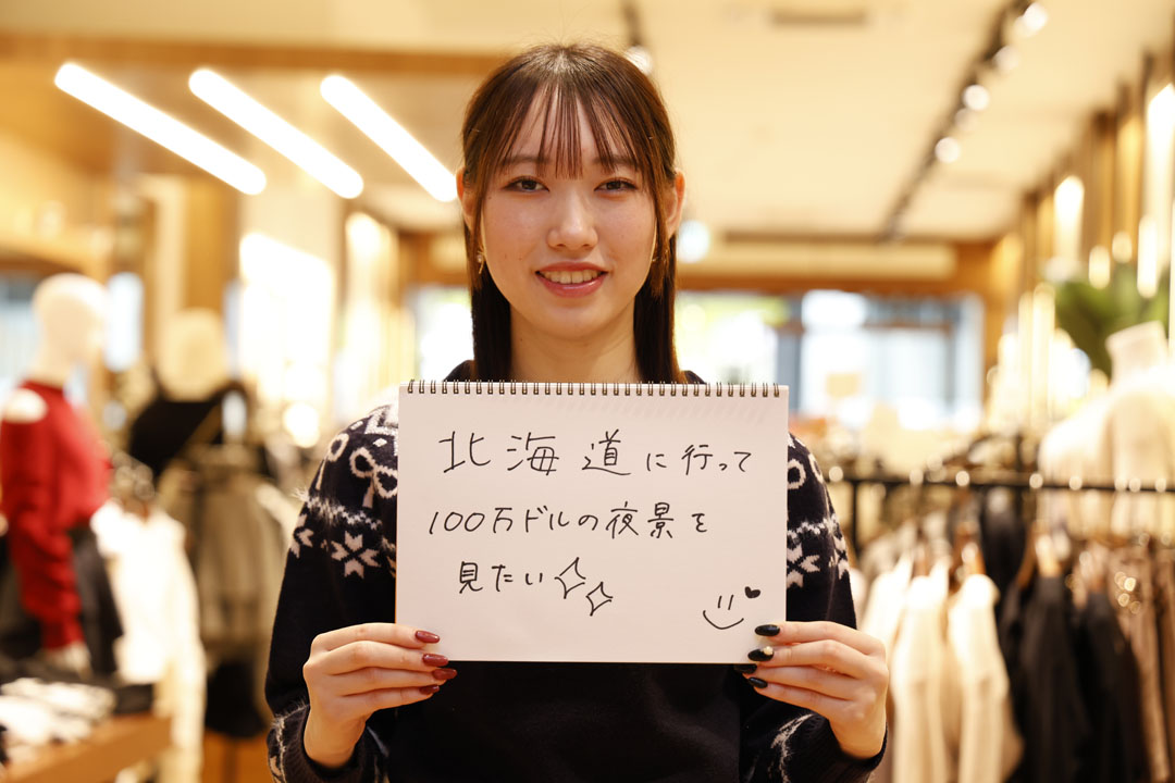 世界三大夜景のひとつにも数えられる函館の夜景を観てみたい!と話してくれたアヤノさん。きっかけは昨年の映画『名探偵コナン 100万ドルの五稜星』。迫力いっぱいに映し出されたアニメーションのワンシーン、そのリアルを「自分の眼で眺めてみたい」とのこと!そのうち怪盗キッドから予告上ならぬ招待状が届いたりして!?