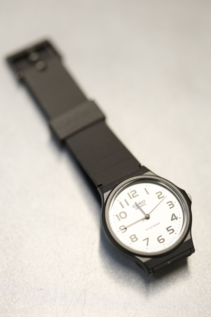 この時期需要が伸びてくるのが「受験用の腕時計」。時刻が見やすくて軽い…と求められるニーズを網羅するのが『CASIO QUARTZ MQ-24-7B2』。