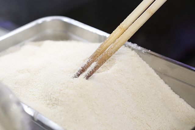 極細のパウダーのようなパン粉は専門業者にオリジナルで作っていただいているもの。