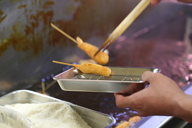 1人の女将さんが、労働者のために考案した…安価で美味しく満腹になるメニュー、それが串かつでした。(※画像は心斎橋店の2019年撮影分)