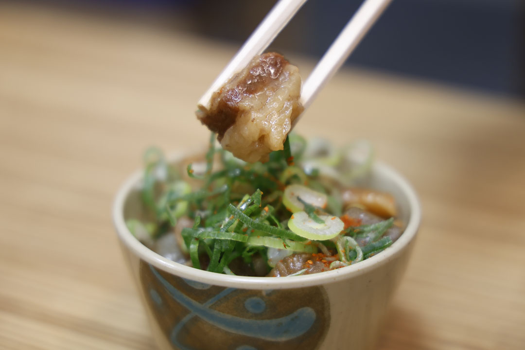 まずは、名物どて焼きから。トロットロに煮込まれたあまーーい牛をひとくち。