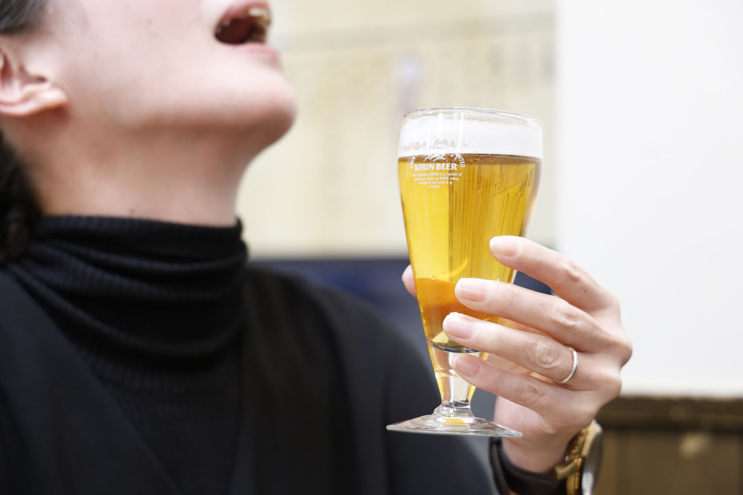 むぐっ、むしゃむしゃ、(ビールを)ゴクゴク・・・