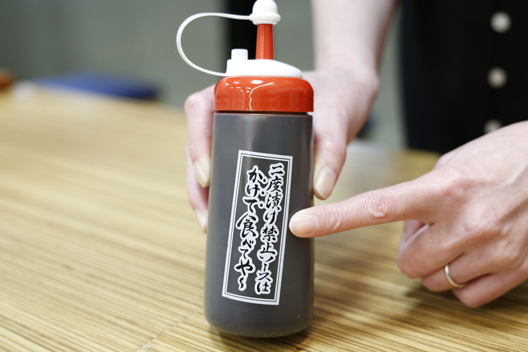 そう、卓上に用意されるソースは画像(右)のようにソースボトルタイプになっているので二度漬け禁止にハラハラしなくても大丈夫。