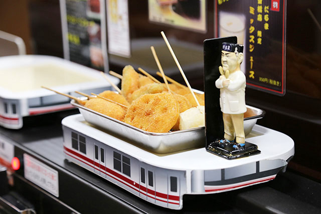 元祖串かつ/天然えび/アスパラ/うずら卵/もち/豚かつ/鶏つくね/赤ウィンナー/チーズちくわ/さつまいも/鶏からあげ/チーズ/れんこん/たこ/季節もの/名物どて焼き(キムチorえだまめに変更で-110円)