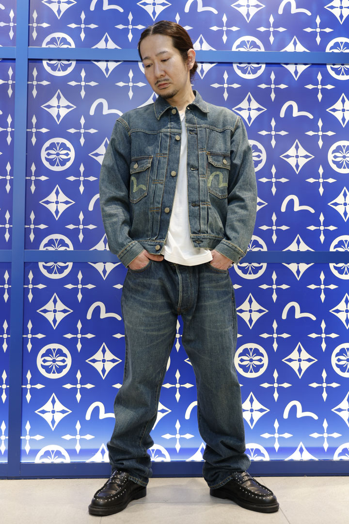 レギュラーストレートを穿いてジャケットを羽織る、ほんとうにたったそれだけのことで「完成」するEVISU独特な世界。