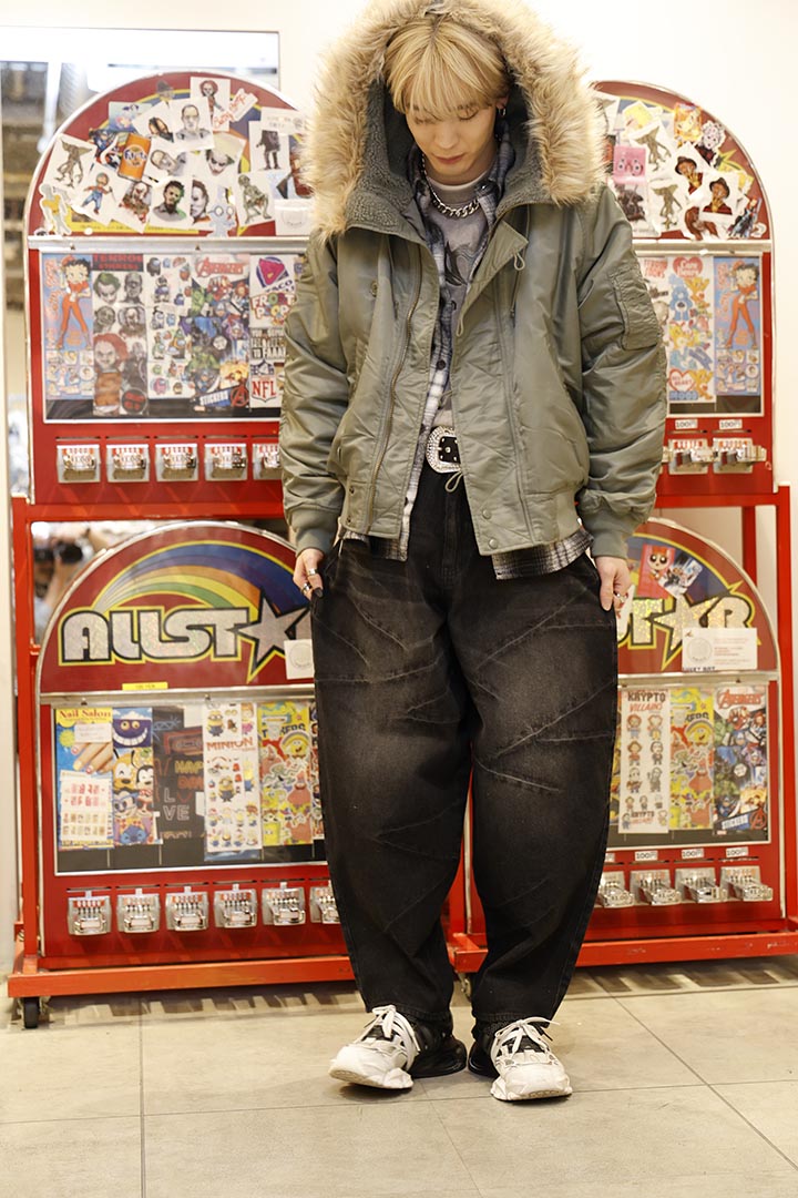 そして、 N-2Bを際立たせるようにシャツとデニムで「ブラック」をリンク。さらには・・・・
