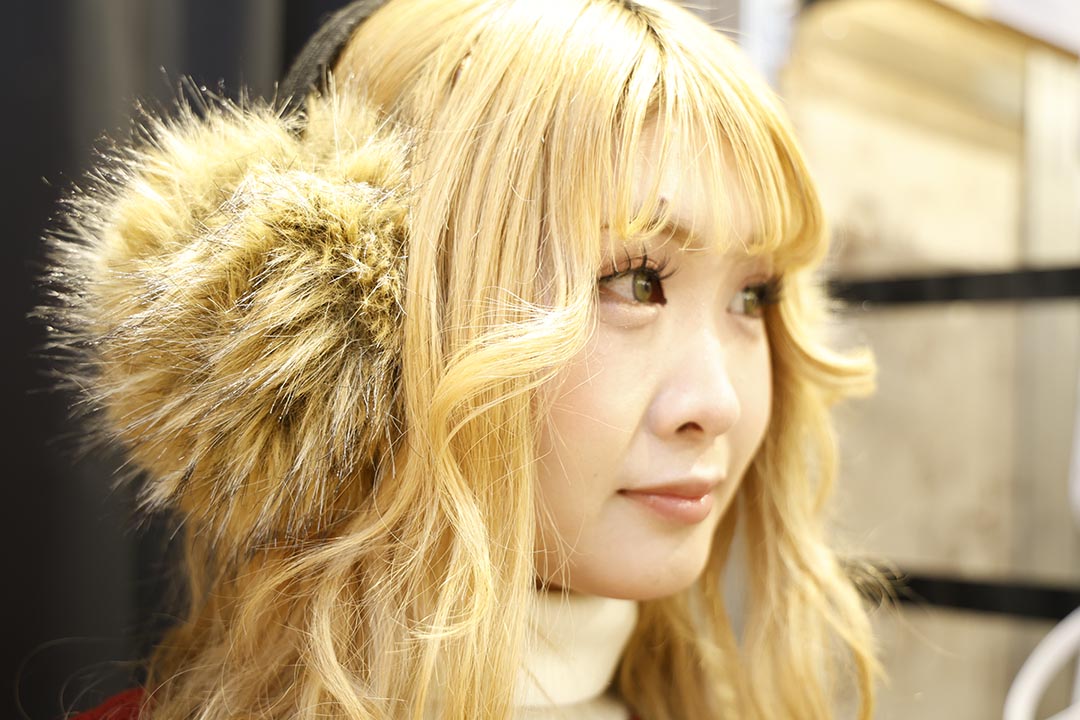 ただし「リボンのセーターのお姉さん」は一筋縄ではいくわけもなく、このデッカいイヤーマフはエッジの効いたワンポイントに。